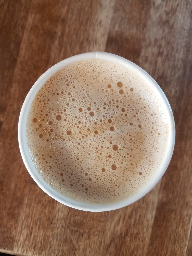As is tradition, I ordered a regular latte during my latest visit. What the decor and the service built you up for, the latte tore that all down. It was, all in all, rather lackluster, both in appearance and taste. The foam was below par. There were several large bubbles visible on top and the foam had no staying power, instead dissolving rather rapidly, parting the way for the heart of the latte to take centre stage. Only, the heart wasn’t ready for the spotlight. While creamy and smooth, that’s about where the positives stopped. The espresso flavour was quite bland and there was nothing that jumped out at me as a flavour profile. In all honesty, it kind of reminded me of those gas station “cappuccino” machines. Now, like I say, they were quite busy at the time when I ordered, so they may have been rushing things a little, but nonetheless, it was not a very memorable latte.